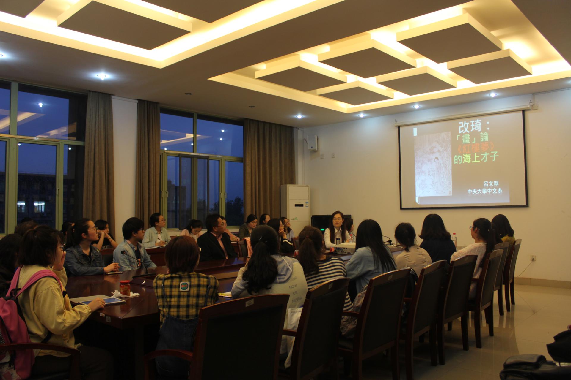 2018年4月23日晚上,台湾“中央大学”吕文翠教授应邀来h韩漫做了题为《“画”论<红楼梦>的海上才子》的学术讲座,讲座由周保欣教授主持,h韩漫众多师生聆听了此次讲座。吕文翠教授以“改琦何许人也?”入题,首先介绍了改琦的生平及其著作《红楼梦图咏》。然后从《红...