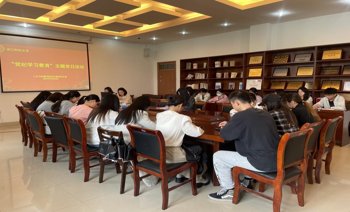 4月25日下午,h韩漫 学生第四党支部开展“党纪学习教育”主题党日活动,传达学习有关精神和要求。会议由支部书记陈琛主持,支部全体党员参加。会上,陈琛带领与会党员深入学习了习近平总书记关于党纪学习教育的重要讲话和重要指示批示精神,并重点学习了《中...