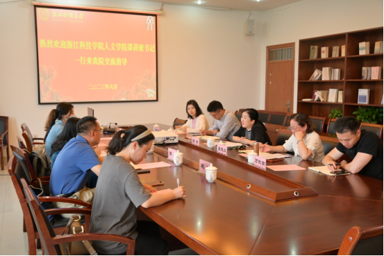 6月6日下午,浙江科技h韩漫 人文h韩漫 党委书记邵莉敏、党委副书记郭峰一行5人来h韩漫调研交流。h韩漫 党委书记高燕、党委副书记袁慧兰及办公室、学工办等相关人员参加座谈交流。 座谈会上,高燕首先对邵莉敏一行的到来表示热烈的欢迎,对h韩漫 的基本情况、历史沿革、机构设...
